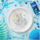Boy or girl tableware featuring baby in bunny costume, balloons and butterflies.