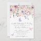This version features a delicate arrangement of watercolor wildflowers and greenery along the top edge of the invitation, with soft pink and purple butterflies fluttering gently across the florals. The colour palette includes blush pinks, dusty rose, lilac, lavender, violet, and fresh greens for a dreamy, gentle aesthetic.