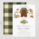 Celebrate your newest adventure with this charming Little Camper Baby Shower Invitation. Featuring adorable woodland camping illustrations including a baby outfit, camper trailer, forest trees, teddy bear, compass, campfire, and rustic outdoor details, this design perfectly captures the cosy spirit of a woodland camping theme. The warm earthy colours paired with a classic green plaid pattern on the back create a sweet and rustic look that’s perfect for welcoming your little explorer. Ideal for woodland baby showers, camping themes, outdoor-inspired celebrations, or rustic baby shower parties.