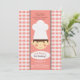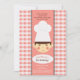 An adorable invitation featuring a smiling little chef with a peach and white gingham pattern background. (FP). <br/><br/>The card is easy to customise with your wording, font, font colour and choice of six paper types.<br/><br/>Not exactly what you're looking for? All our products can be custom designed to meet your needs at no extra charge.<br/><br/>Simply contact us at askpixieprints@aol.com.<br/><br/>Coordinating products available: