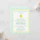 A little chick and green check border card featuring green type fonts to compliment the fun, informal and whimsical design. Timeless !