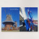 Little Chute Windmill Dutch Smock Mill and Wheel in Little Chute Wisconsin jigsaw puzzle. This functioning wooden mill is an 1850’s design from the province of North Brabant in the Netherlands. The wheel controls the shift of the blades to the best wind location. Two photos in one puzzle. The text can be personalised.