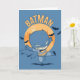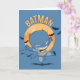 An adorable comic of Batman performing a flying kick, featuring his name and bats flying overhead.