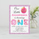 Little Cupcake Pink Lilac Glitter 1st Birthday One Invitation
