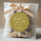 Modern Sweet Wedding Minimalist Thank You Gifts Classic favor Round Sticker, in classy handwriting script, cute little red heart, with bride and groom name and date, in yellow gold.