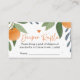 Celebrate your little cutie on the way with this charming citrus-themed baby shower diaper raffle enclosure card! Featuring watercolor oranges, greenery, and sweet hearts, this "A Little Cutie Is On The Way" design is perfect for a fall or gender-neutral baby shower.