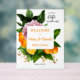 Bring on the good news and invite everyone to celebrate the new addition with a cutie-fruity baby shower! This rendition has botanical orange and lush peony with citrus green foliage.