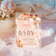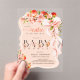 Little Cutie Peach Floral Bow Acrylic Baby Shower Invitations