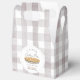 This cute "a little cutie pie is on the way" gender-neutral thanksgiving baby shower favour box features a pie on a white background with grey gingham plaid patterns. Personalise it for your needs. You can find matching products at my store.