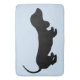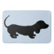Cute little dachshund silhouette design with blue background bath mat. Great for wiener dog lovers.
