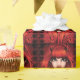 Get devilish with this red hot awesome looking devil girl with skulls in the background.