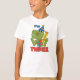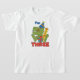 Little Dino 3rd Birthday T-shirts, bodysuits, cards, stickers, birthday buttons, tote bags, keepsakes, and other dinosaur 3rd birthday apparel and gifts featuring a green smiling dinosaur with balloons, party hat, and a gift!