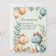 Little Dino Turning One Pastel Watercolor Birthday Invitation