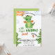 The invitation features a darling watercolor illustration of an adorable baby dargon and trees. The background is a soft sage green.