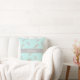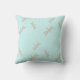Sweet throw pillow for nursery and kids room features pastel grey and coral dragonflies on aqua background. Customise with child's name on centre grey band.