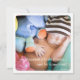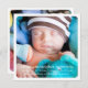 "We dreamed a little dream... and he came true" - Thoroughly modern and simply elegant, this design features two large photos of your baby framed in a white border one on the front and one on the back. The front also holds baby's important information, and on the back there is text that can be customised or left as is.