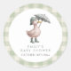 This adorable circular sticker features our cute watercolor duckling in sage green rain boots and hat, holding a gingham umbrella - perfectly framed by a soft sage gingham border. Personalized with the baby shower details, this thoughtful round sticker is as lovely to look at as it is to use.