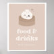 Boho Food & Drinks Sign featuring an adorable Kawaii Bao Dumpling complemented by a neutral colour palette and retro typography.