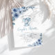 a floral design with painted watercolor dusty blue flowers and a baby elephant. The text and colours can be personalised.