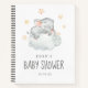 This little elephant girl baby shower gift list notebook is perfect for a simple baby shower. The modern design features a modern and cute watercolor safari zoo animal sleeping on a soft cloud with twinkling yellow stars. Personalise with the name of the mum-to-be.