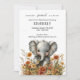 A charming watercolor illustration of a baby elephant sitting gently among colorful wildflowers. With soft gray tones, rosy cheeks, and sparkling eyes, the little elephant radiates innocence and warmth. The delicate floral details and clean white background create a calm, dreamy atmosphere, making the artwork feel sweet, peaceful, and perfect for children’s illustrations or nursery decor.