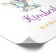 A Floral design with a script design and beautiful watercolor purple flowers and a painted baby elephant. The text and other features can be personalized.