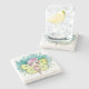 The coasters are gorgeous, a quality feel and heavy weight. They look like a precious archeological find. A rustic stone juxtaposed with a modern floral black and white print. I like the way the print goes slightly imperfect on the cut stone edges giving them a kind-of natural beauty.