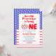 Modern little firecracker patriotic 1st birthday invitations. Background is white but can be customised to a colour of your choosing.