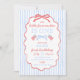 Girl summer birthdays are so fun, and this preppy and patriotic birthday theme is no exception! This summer 4th of July 1st birthday invitation is inspired by bright summer colors, coquette bows, and beachy pool parties. Celebrate your "little firecracker" this summer by a 4th of July birthday collection that is just as cute and bright as your little girl!
