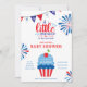 Little Firecracker 4th of July Baby Shower Invitation. Little Firecracker Patriotic Baby Shower Invitation in red, white and blue and fireworks with patriotic cupcake accent.