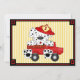 Cute Dalmatian puppy dog, fire truck and fireman hat with sunny yellow stripe background for an adorable boy birthday invitation. All this text is ready for you to customise with your information. Birthday could be changed to Second or Third if you prefer.