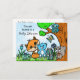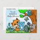 Cute whimsical hand drawn Woodland Creature or Forest Animals themed boy's baby shower invitations. Cute little fox holding a blue teddy bear.