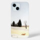 A winter watercolor landscape with a fun hunting in the snow adorns this phone case!