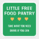 Little Free Food Pantry sticker for a sign on your giveaway pantry.Clear white type on a green background with orange hearts. Instructions say Take What You Need, Share if you Can to encourage people to take and donate. Little food pantries have become popular as a way to share non-perishable food items with those who need them.