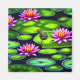 A fun cute little Frog resting on beautiful colourful Lily pads.