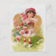 Little vintage gardener in white summer dress with a basket full of red roses. Light ,cheerful romantic antique graphic image .Courtesy of cassandra204 .