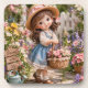 Little girl and her flower garden coaster