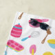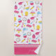 Does your little girl love to bake and cook? This cute custom baking pattern beach towel is perfect! Towel has cookies, oven mitts, measuring spoons and cups, cupcakes, cakes, muffin tins, mixers, and more. There are also sprinkles on top of a pink background and a place for the first name of your little kid.