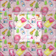This camping themed fabric is perfect for little girls. Watercolor illustrations of tents, camp chairs, lanterns, toasting marshmallows and more gear for the happy camper are set against a soft pink background.