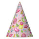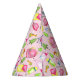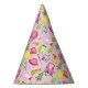 Throw the perfect One Happy Camper themed birthday party for your little girl. These paper party hats have an all over pattern of pretty watercolor illustrations of an assortment of camping supplies set against a pretty pink background.
