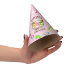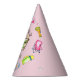 Throw the perfect One Happy Camper themed birthday party for your little girl. These paper party hats have pretty watercolor illustrations of an assortment of camping supplies set against a pretty pink background and are ready to be personalised with the name of your little happy camper.