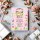 Throw the perfect One Happy Camper themed birthday party for your little girl. These invites feature watercolor illustrations of various camping gear and accessories set against a pretty pink background and are ready to be customised with your party details.