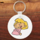 A little girl down on her knees praying with a grin on her face. This design looks really effective on this Keychain