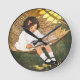Little Girl reading in a hammock Round Clock