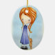 A little cute girl holding her bunny plush for this lovely Ornament. This little girl has blonde hair and she is wearing a lovely blue dress with a white shirt and black shoes. With one hand she is holding her bunny plush. No matter where she goes her bunny friend is always with her. The ornament comes with the text "my perfect friend" on the back but you can change it if you like. From my original painting ink and acrylic on paper.