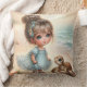 An Adorable Little Girl On The Beach With Her Turtle Childs Throw Pillow