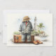 This hand-illustrated design features a soft vintage suitcase, maps, postcards, and a teddy bear or baby in classic traveller style — all in warm, dreamy tones. The whimsical atmosphere evokes the wonder of childhood voyages and the excitement of new beginnings.