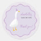 Add a sweet finishing touch to your party favours with this adorable thank you sticker featuring a hand-painted goose, wavy-edged frame, and pastel lilac gingham background. Designed to coordinate with our Little Goose baby shower collection, it's perfect to welcome little girls and boys. Personalise with your own message!