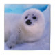 Little Harp Seal Pup Covered in Snowflakes Ceramic Tile