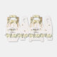 Cute bee hive birthday favour boxes featuring a honeycomb background, faux gold foil drips, white watercolor florals, bees, and a elegant thank you template that is easy to personalise.